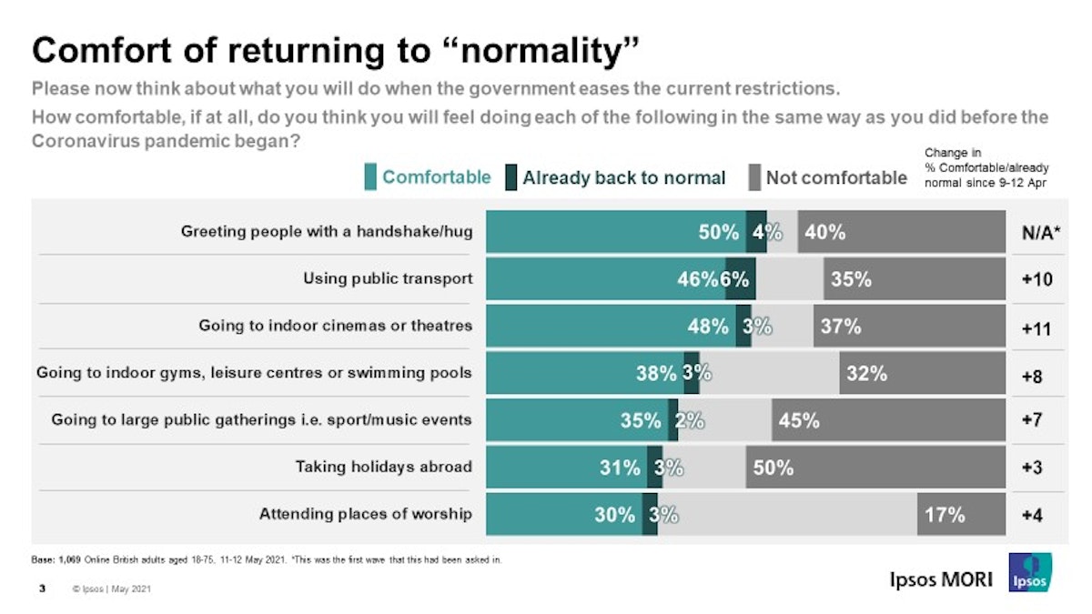 Ahead of the next step of the lifting of lockdown, we take a look at how comfortable Britons are returning to "normal" and what they're looking forward to